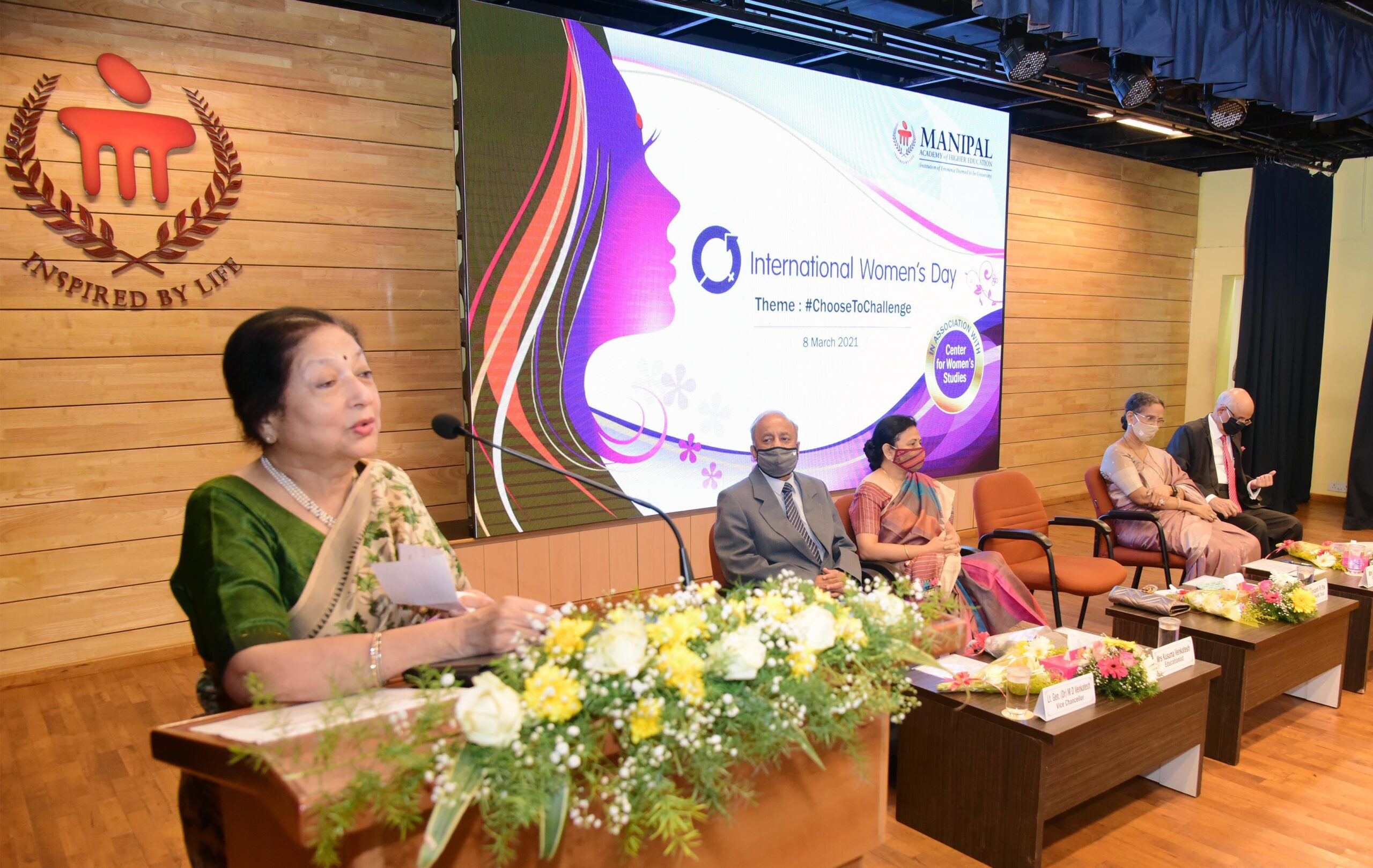 Mrs Vasanti R Pai, Trustee, MAHE, giving the Presidential Address said “I welcome Lt.Gen. Madhuri Kanitkar and it’s an honour to have her on this day. Though 2020 has been a year full of challenges due to the pandemic but women have shown courage and proved themselves to be strong and they can achieve whatever they want at any age if they make up their mind. I wish everyone a very happy and healthy Women’s Day”.